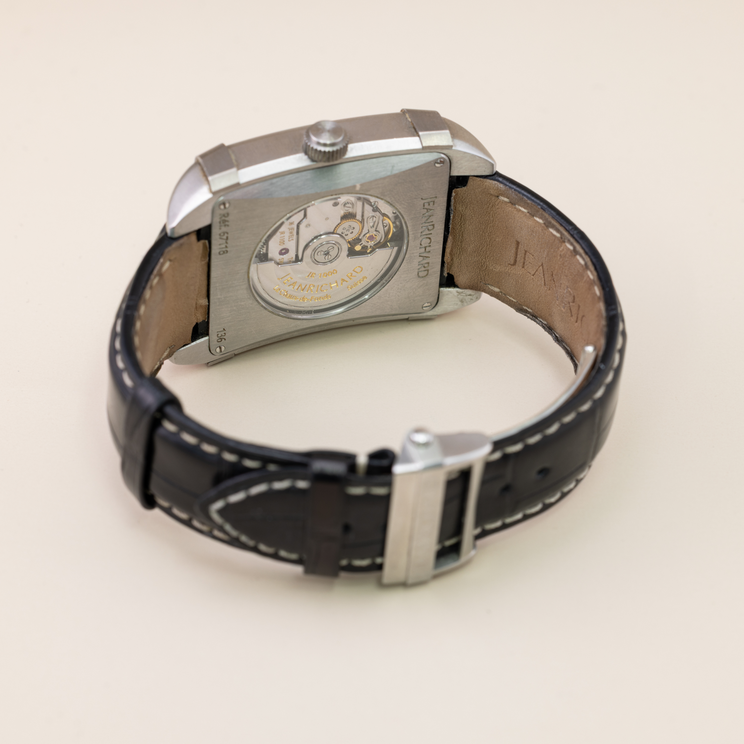 La montre JeanRichard Paramount est une collection emblématique de la marque horlogère suisse JeanRichard, connue pour son design inspiré du style architectural Bauhaus des années 1930, avec des boîtiers carrés et des lignes épurées. Lancée dans les années 1980 par Luigi Macaluso, elle a été modernisée avec des innovations comme une « heure tournante » carrée et des tourbillons uniques, rendant hommage à l'esprit pionnier de Daniel Jeanrichard