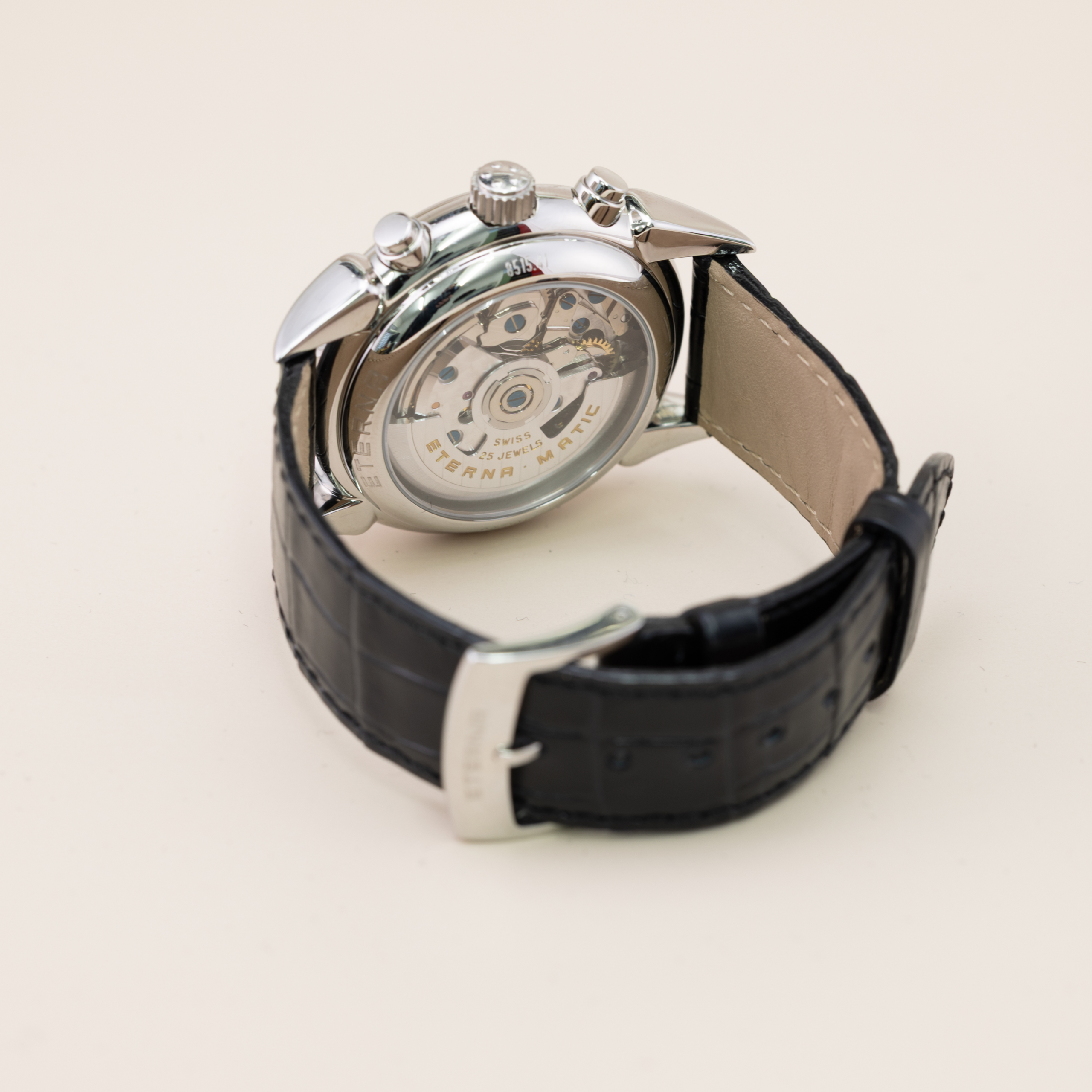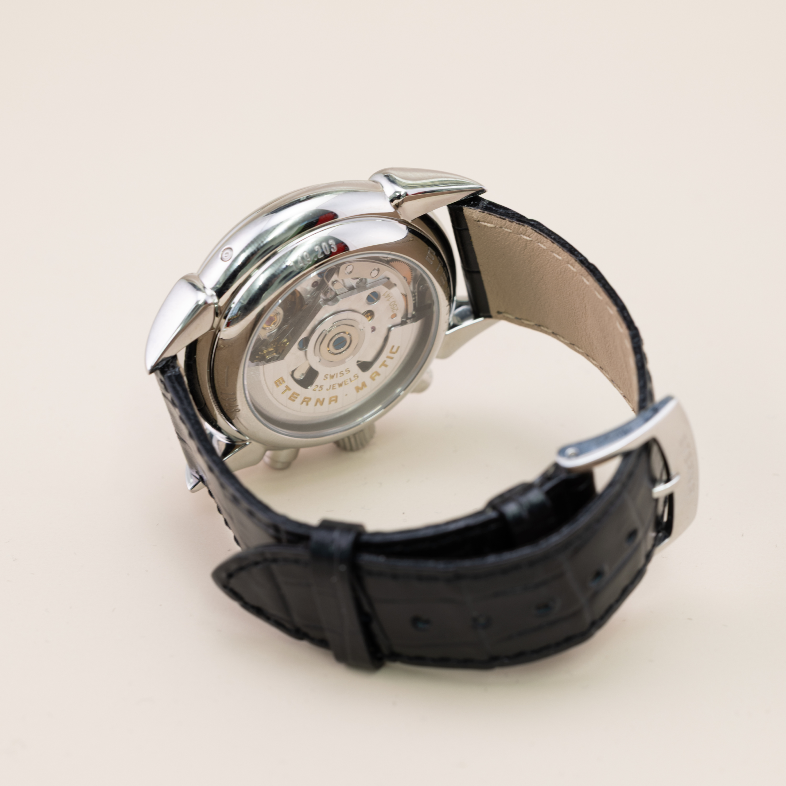 La montre Eterna Heritage 1948 est un chronographe automatique très poétique pourvu d’un calendrier et d’une phase de lune. Produite au début des années 2000, cette montre Swiss Made figure parmi les dernières montres Eterna respectables avant que la marque soit rachetée par la China Haidian Holdings Limited en 2011. Produite en faible quantité, cette montre Eterna 1948 se trouve difficilement. Recherchée par les fans de la marque historique, cette montre Heritage 1948 reste rare, même sur le marché de l’occasion.